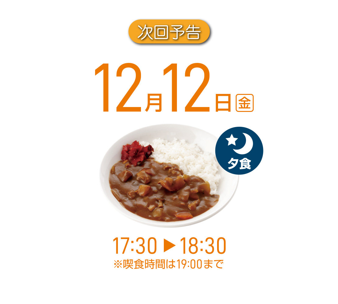 12月12日は金曜日ですので、いつもの夕食でのカレー食堂になります。