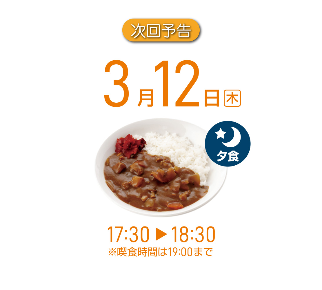 3月12日は木曜日ですので、いつもの夕食でのカレー食堂になります。